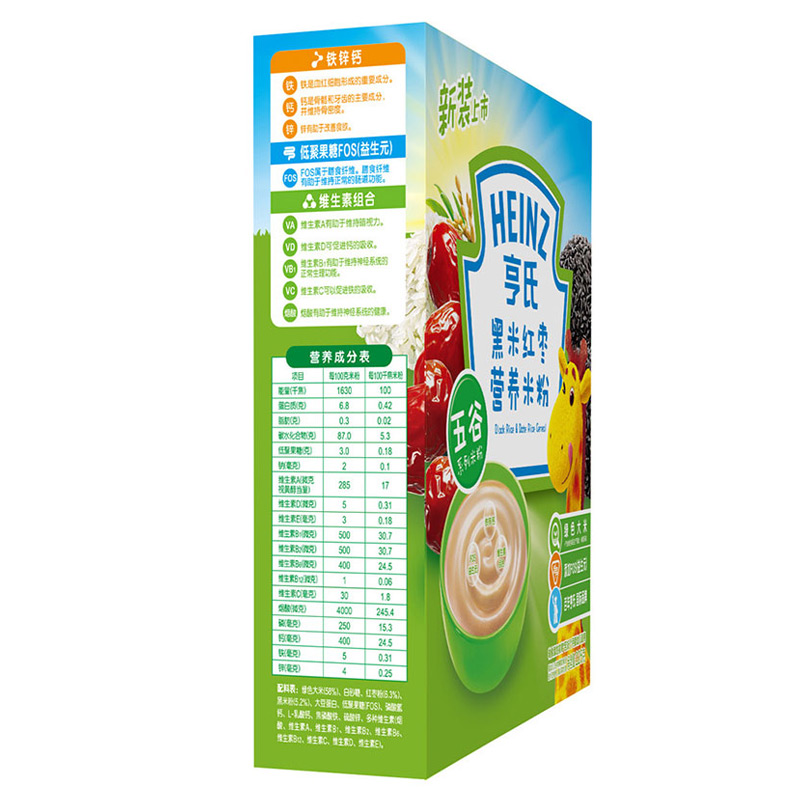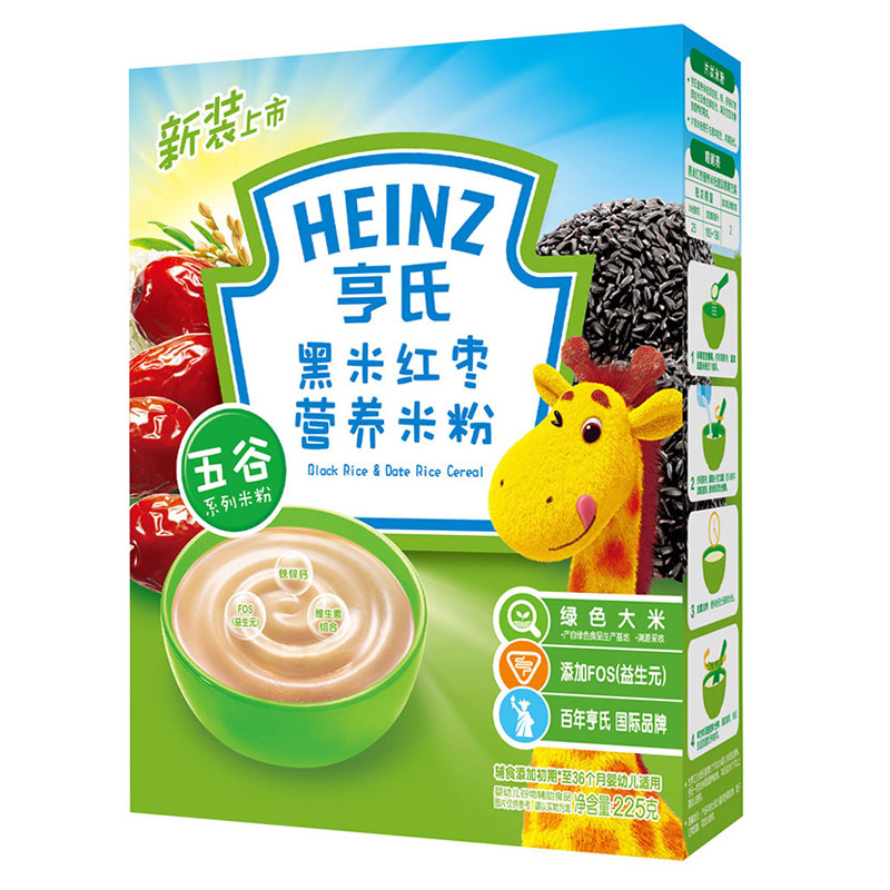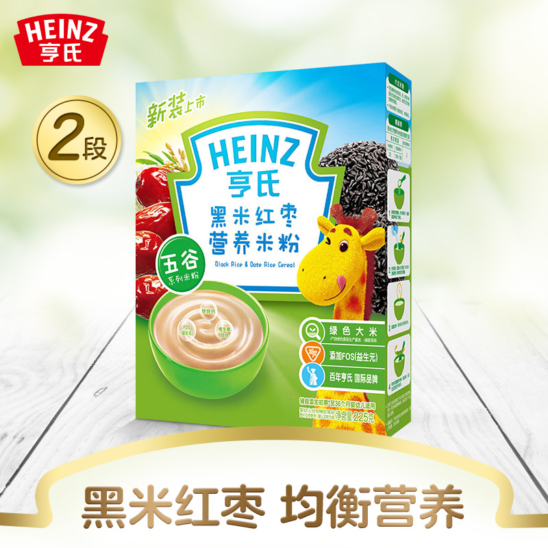 亨氏(Heinz)1段 嬰幼兒輔食 黑米紅棗 寶寶米粉米糊 225g (輔食添加初期-36個(gè)月使用)
