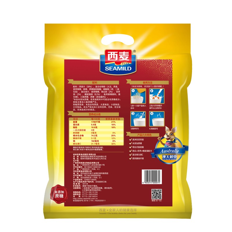 西麥 燕麥片 無(wú)添加蔗糖 營(yíng)養早餐食品 牛奶好搭檔 中老年營(yíng)養 谷物代餐麥片700g-誠成商貿有限責任公司