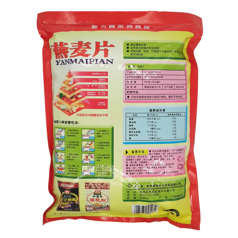 智力燕麥片純燕麥早餐沖飲600g獨立小包裝 辦公休閑飽腹-誠成商貿有限責任公司