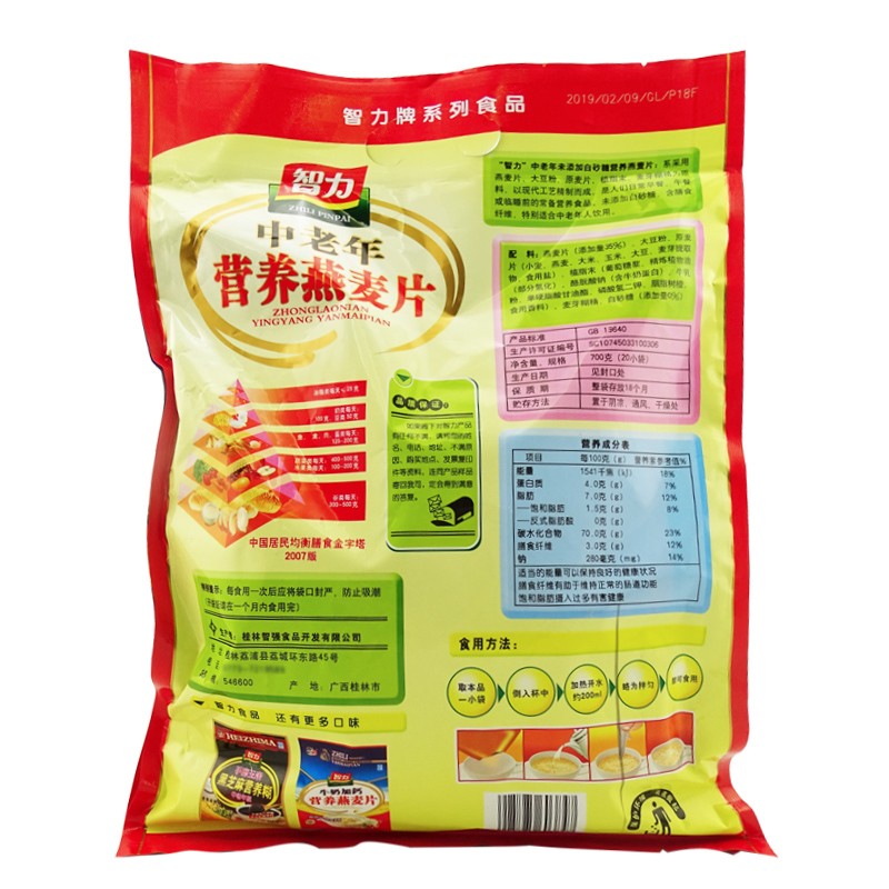 智力 營(yíng)養早餐代餐 即食中老年澳洲復合燕麥片 700g (35g-20小袋)