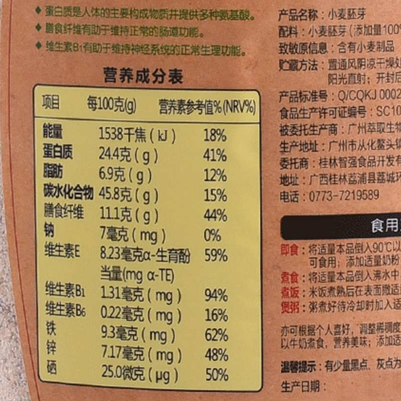 智力 小麥胚芽胚芽粉 969g 胚芽片即食高纖富硒純雜糧代餐粉-誠成商貿有限責任公司