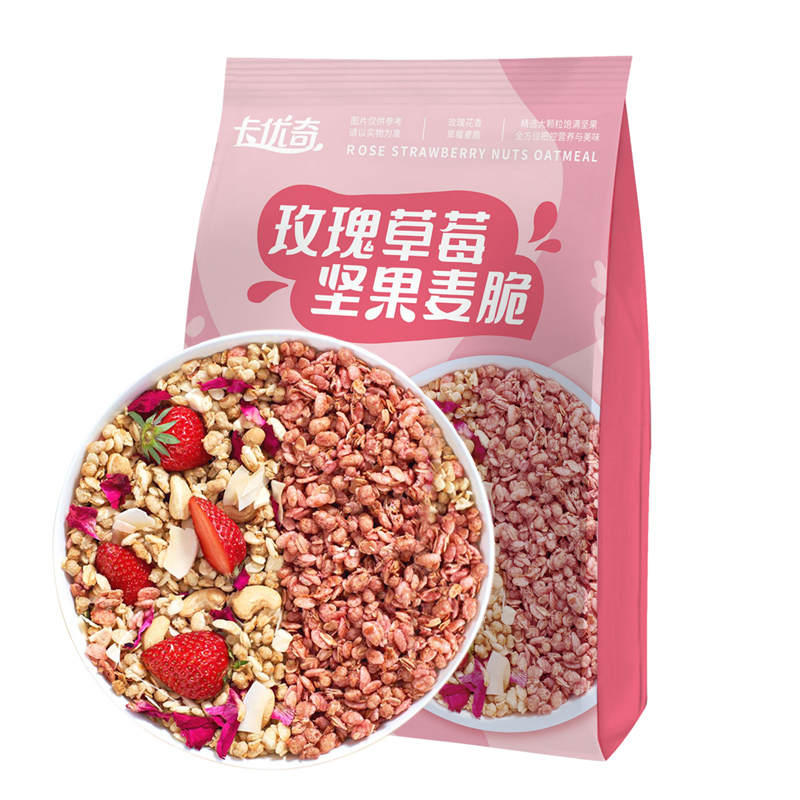 智力卡優(yōu)奇水果堅果麥脆300g免煮學(xué)生營(yíng)養早餐即食干吃燕麥代餐 玫瑰草莓麥脆-誠成商貿有限責任公司