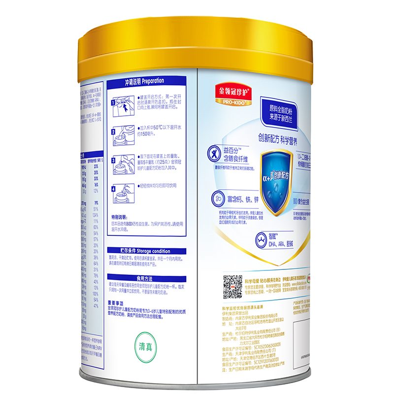 伊利奶粉 金領(lǐng)冠珍護系列 兒童配方奶粉 4段 900g(36-72月兒童配方奶粉)