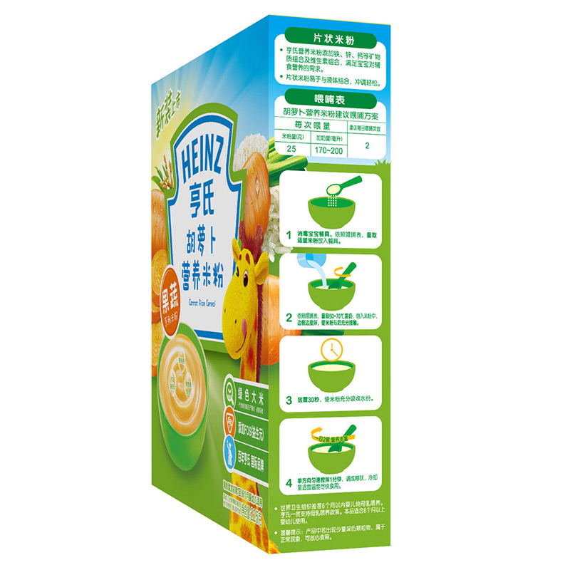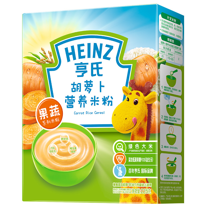 亨氏 (Heinz) 1段 嬰幼兒輔食 胡蘿卜含維生素 寶寶米粉米糊 225g (輔食添加初期-36個(gè)月適用)-誠成商貿有限責任公司
