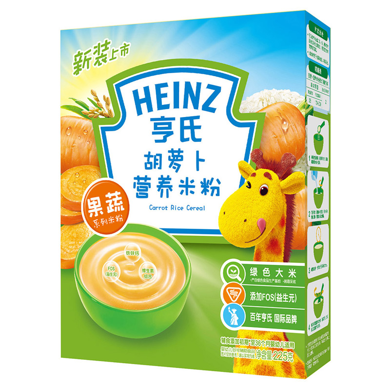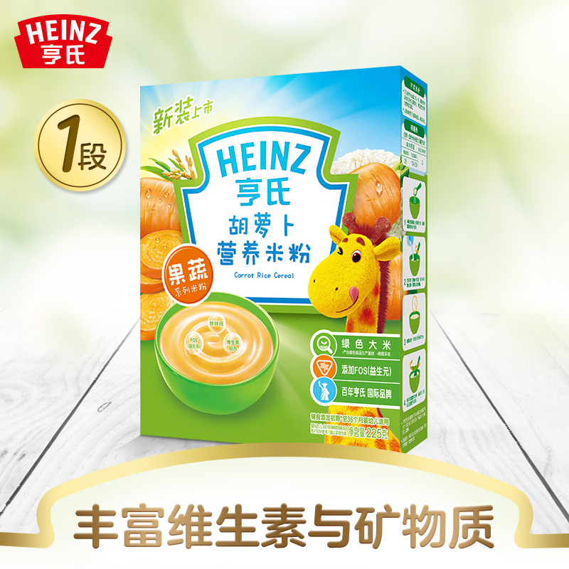 亨氏 (Heinz) 1段 嬰幼兒輔食 胡蘿卜含維生素 寶寶米粉米糊 225g (輔食添加初期-36個(gè)月適用)