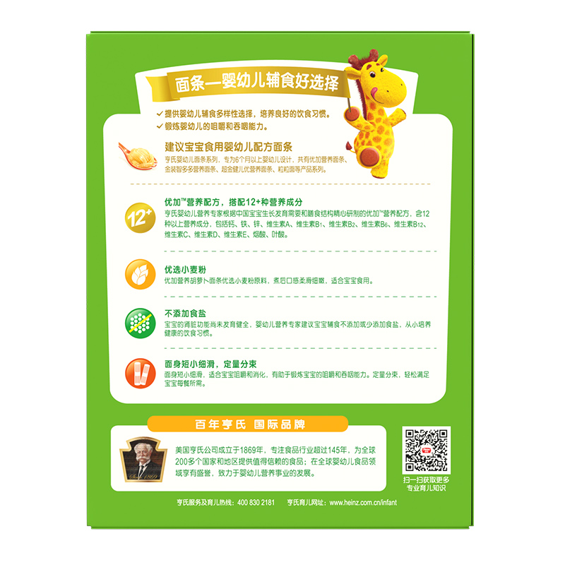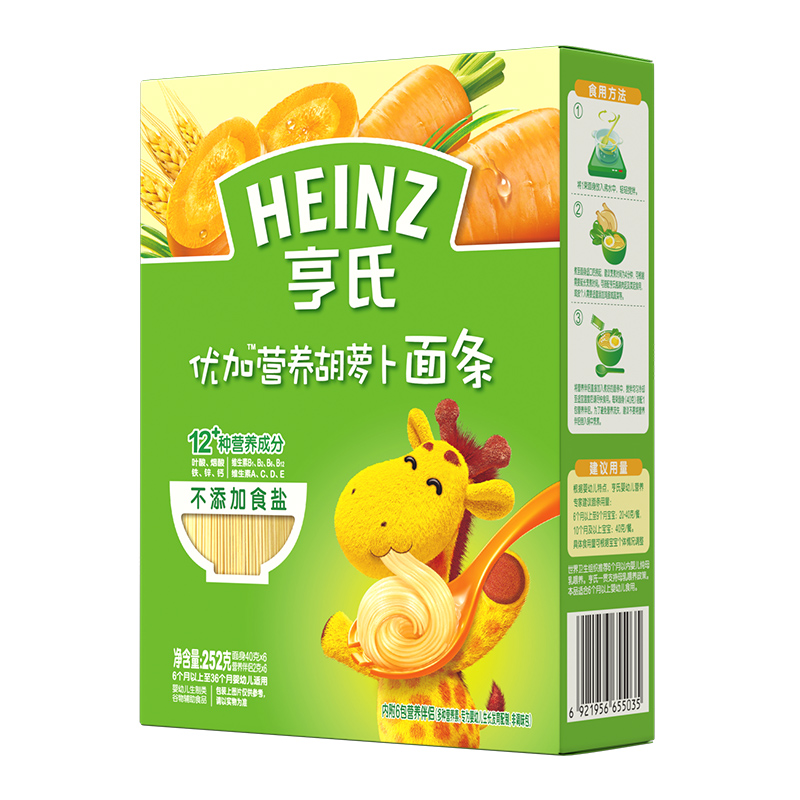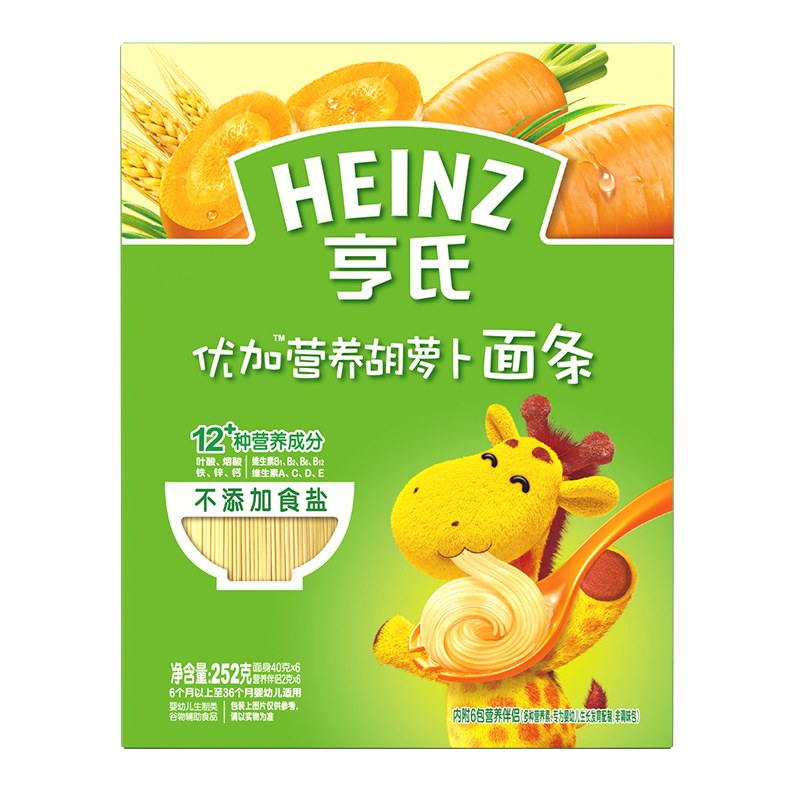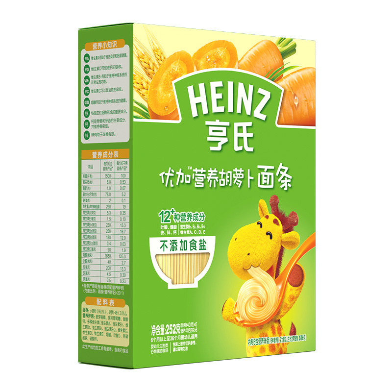 亨氏 (Heinz) 1段 嬰幼兒輔食 優(yōu)加寶寶面條 含胡蘿卜 寶寶營(yíng)養面條252g(無(wú)鹽)(輔食添加初期-36個(gè)月適用)-誠成商貿有限責任公司