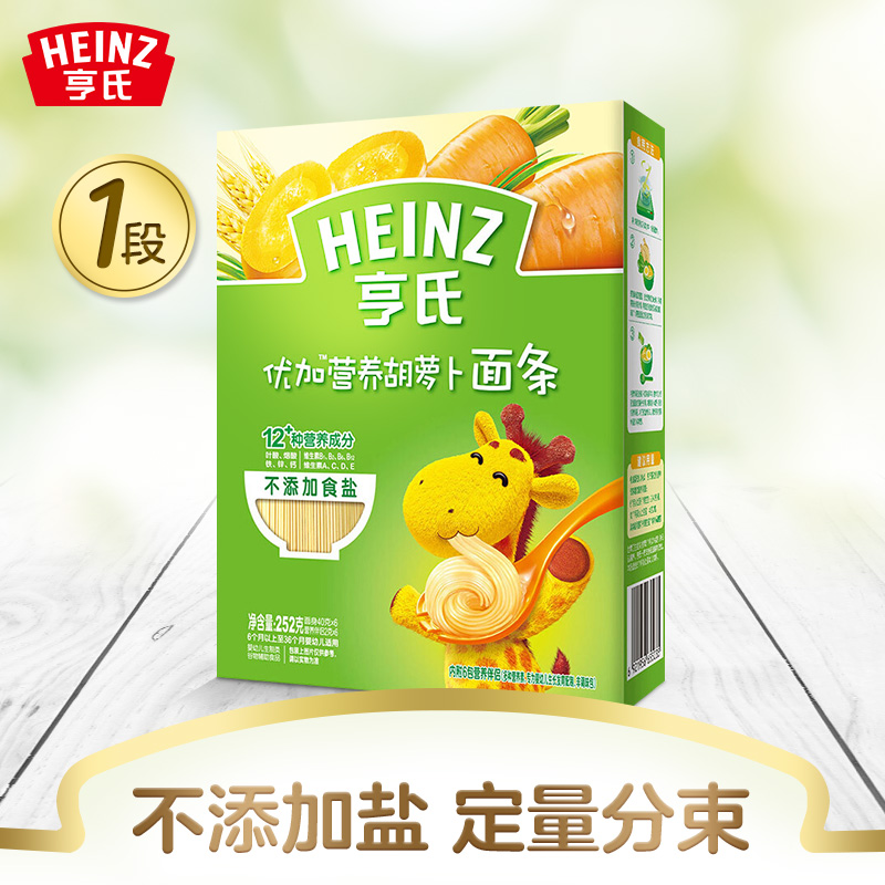 亨氏 (Heinz) 1段 嬰幼兒輔食 優(yōu)加寶寶面條 含胡蘿卜 寶寶營(yíng)養面條252g(無(wú)鹽)(輔食添加初期-36個(gè)月適用)