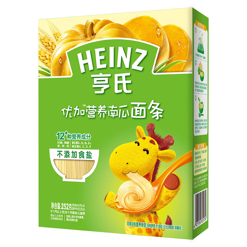 亨氏 (Heinz) 1段 嬰幼兒輔食 優(yōu)加寶寶面條 含南瓜 寶寶營(yíng)養面條252g(無(wú)鹽)(輔食添加初期-36個(gè)月適用)-誠成商貿有限責任公司