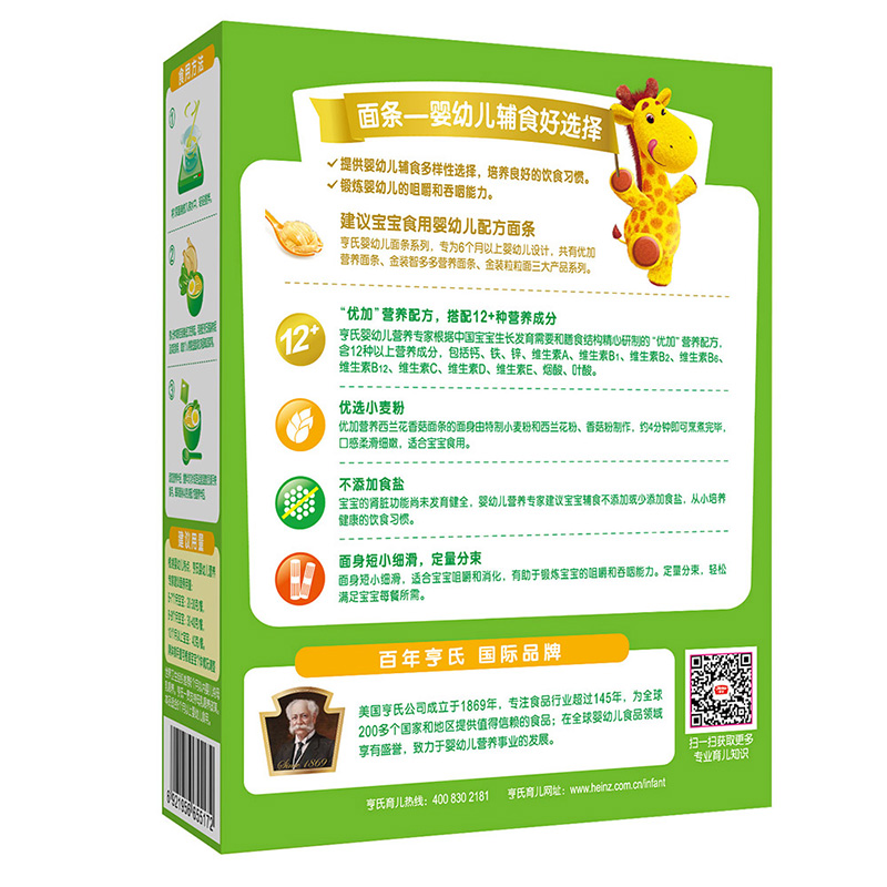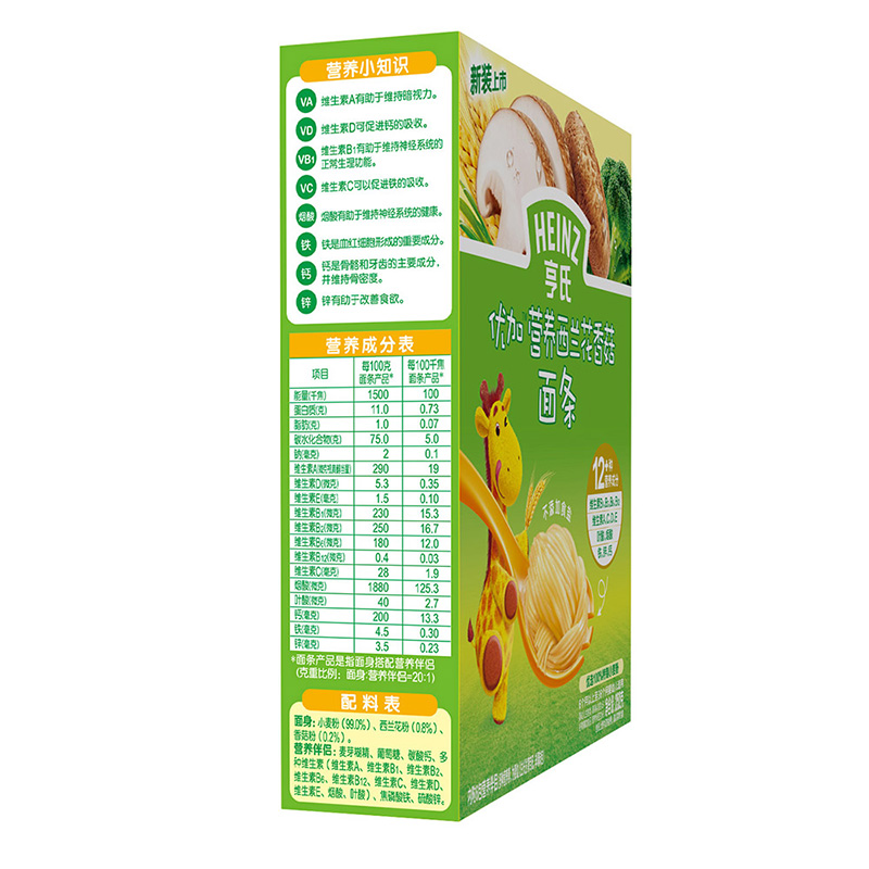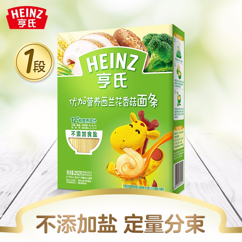 亨氏 (Heinz) 1段嬰幼兒輔食優(yōu)加寶寶面條 西蘭花香菇 寶寶營(yíng)養面條336g(無(wú)鹽)(輔食添加初期-36個(gè)月適用)-誠成商貿有限責任公司