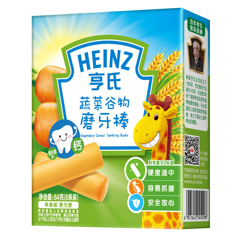 亨氏 (Heinz) 1段 嬰幼兒輔食 蔬菜 寶寶零食磨牙棒64g(輔食添加初期-36個(gè)月適用)-誠成商貿有限責任公司