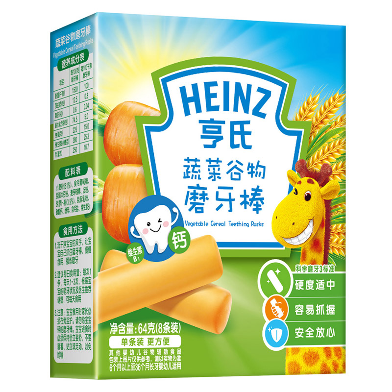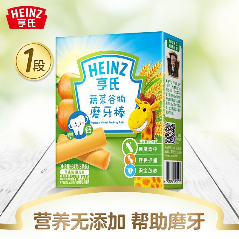 亨氏 (Heinz) 1段 嬰幼兒輔食 蔬菜 寶寶零食磨牙棒64g(輔食添加初期-36個(gè)月適用)