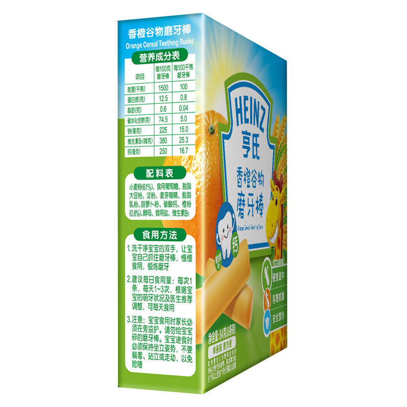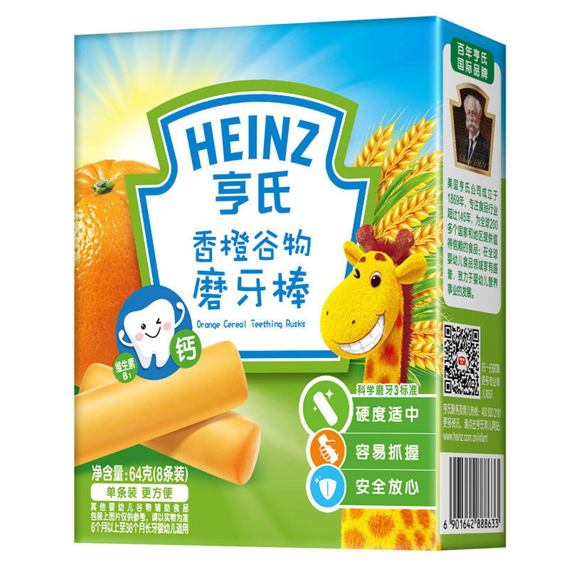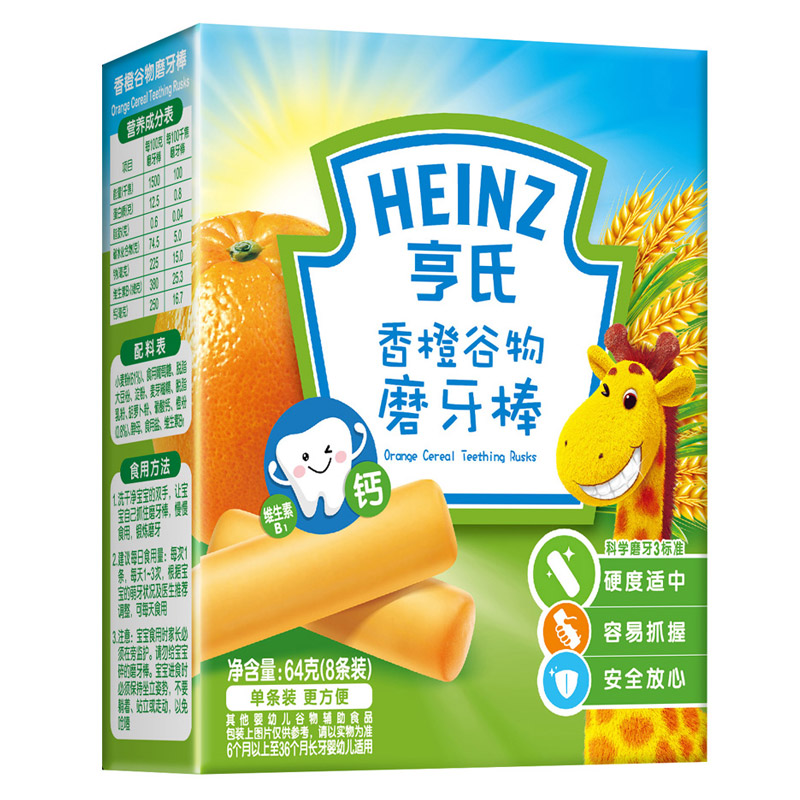 亨氏 (Heinz)1段 嬰幼兒輔食 香橙 寶寶零食磨牙棒64g(輔食添加初期-36個(gè)月適用)-誠成商貿有限責任公司