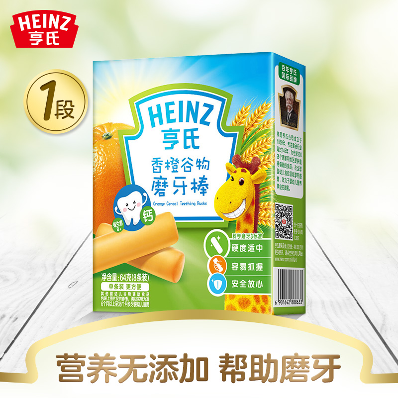 亨氏 (Heinz)1段 嬰幼兒輔食 香橙 寶寶零食磨牙棒64g(輔食添加初期-36個(gè)月適用)
