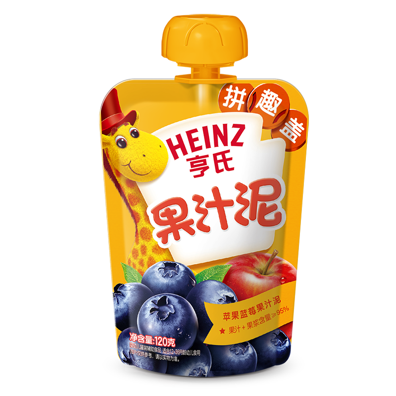 亨氏(Heinz)果汁泥 嬰兒水果泥寶寶輔食泥零食(1-3歲適用) 藍莓蘋(píng)果120g