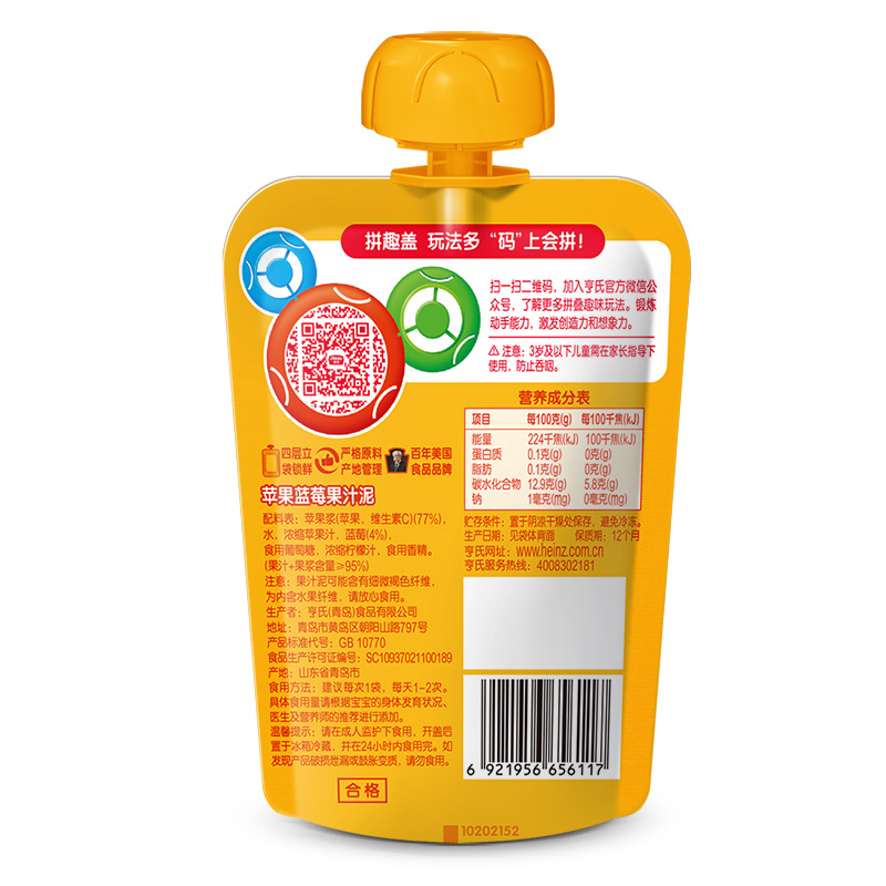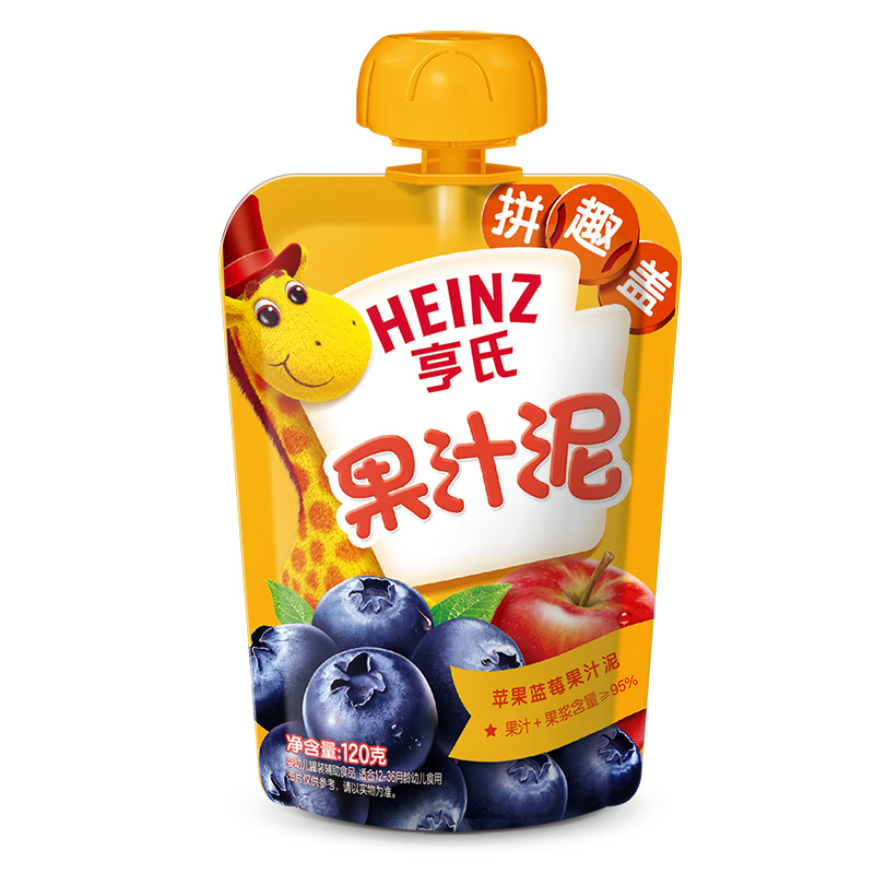 亨氏(Heinz)果汁泥 嬰兒水果泥寶寶輔食泥零食(1-3歲適用) 藍莓蘋(píng)果120g-誠成商貿有限責任公司