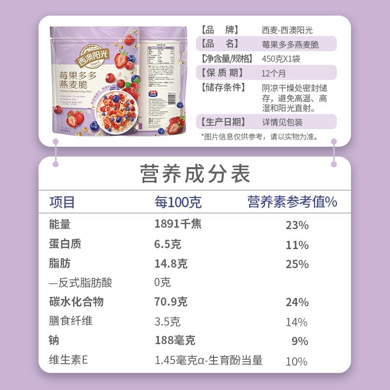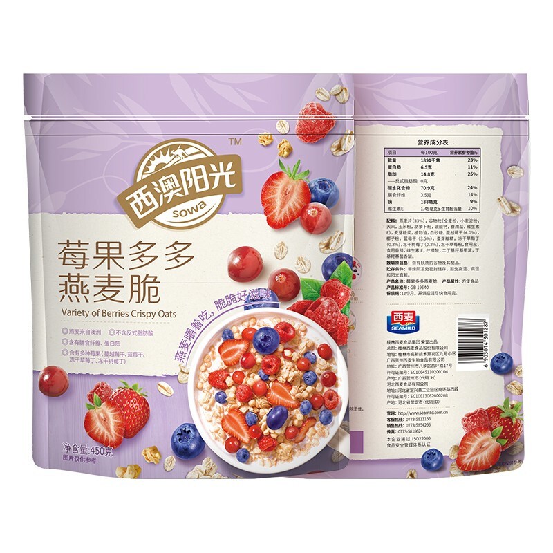 西麥西澳陽(yáng)光莓果多多燕麥脆450g袋 即食干吃冷泡早餐谷物燕麥片代餐 莓果多多燕麥脆450g-誠成商貿有限責任公司